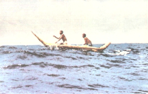 След това седна на кормилото фотографът и продължи с тримата островитяни, Ед и мене. Когато тръгнахме, блестяха звездите, но сега заваля. Атан, който седеше тържествено върху кутията за инструменти между фотографа и мен, изглеждаше неспокоен и започна да ми шепне, че се нуждаем от малко „късмет“. Селският капитан промълви на Ед с извънредно мрачен глас, че вятърът като че ли изменя посоката си. Понеже бяха много напрегнати тази вечер, не можех да преценя със сигурност дали туземците се тревожат от нещо определено или са просто потиснати от сериозността на събитието. Опасявах се да не се случи нещо, което би ги накарало да се изплъзнат в последната минута. Случката с брата на клисаря беше още много прясна в паметта ми.