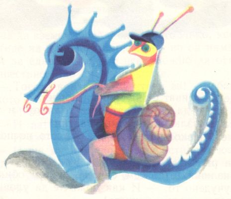 — А къде е това конче, дето ще го хванеш, за да си ходиш с него на морски пътешествия? — попитаха рибките и веднага престанаха да треперят, понеже всеки знае, че няма защо да се трепери от едно охлювче.