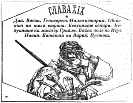 Дан. Васан. Генисарет. Малко история. Обликът на тази страна. Бедуините овчари. Бедуините на мистър Граймс. Бойно поле на Исус Навин. Битката на Варак. Пустош.