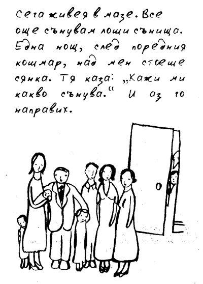 Надрасканите упражнителни думи стояха величествено върху стената до стълбите — нащърбени, детински и прелестни. И гледаха как скритият евреин и момичето спяха, ръка върху рамо.