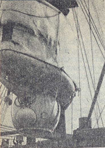 Скочих нетърпеливо в моторницата всред тази пукотевица и скоро бях на борда на „Скалдис“. Веднага щом се здрависах с капитан Лафорс и учените, изтичах към трюма, където се намираше дирижабълът чудо.