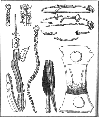 Рис. 25. Инвентар от погребение, характерен за хоризонта на коланите-верижки, украсени с щемпелуван орнамент (Карабурма гроб 29) (по Тодорович)