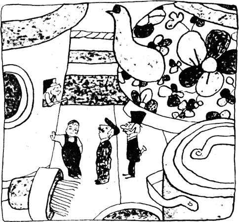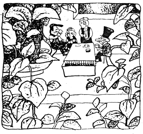 Човечетата отидоха в кухнята, промъквайки се между тенджери и чайници. Хладилин изнесе кошницата с храната и по клоните на телефончето всички се качиха на перваза. Новият майстор наля чай от термоса и каза: