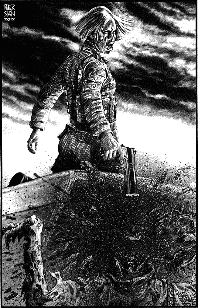 Покатерих се на покрива на „Лексус“-а — първото, което трябва да сториш в подобна ситуация, е възможно най-бързо да заемеш добро място за самоотбрана — и прецених разстоянието, делящо ме от нападателите. После определих първата си цел, поех си дълбоко дъх и натиснах спусъка. Този път изстрелът ми беше в десетката. Да бъдеш перфектен боец значи да вземаш решения със скоростта, с която се движат електрохимическите импулси в организма ти. Успокоих се, концентрирах се, съмненията и моментната слабост ме напуснаха. Имах чувството, че стълкновението продължава десет часа, макар че в реалността едва ли се бе проточило над десетина минути. Унищожих общо шейсет и един живи мъртъвци и около мен се образува солиден плътен пръстен от простреляни зомбита. Отдъхнах си, проверих оставащите ми боеприпаси и започнах да чакам новата вълна. Обаче тя така и не връхлетя.