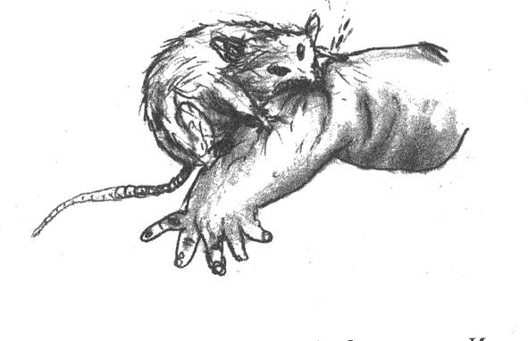 Хранеха го с рибени кюфтета — най-гадното ядене на света за Атила. Сложиха му метален нашийник с името му, гравирано върху плочка, а дебелото момче всеки ден измъчваше безжалостно клетия воден плъх, като пъхаше пръчки в клетката му. И така всеки ден, до деня, когато решиха да купят нова клетка на Атила, защото бе напълнял ужасно от рибените кюфтета. Налагаше се да го направят, докато той още можеше да се промуши през вратичката на старата.