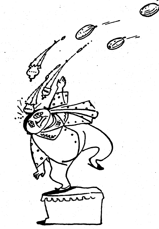 — А може пък да е било в кандилото! — викнал един слушател и тук започнали първите смехове, което много объркало Ибрахим Тиквоглавия. Той решил веднага да започне с историята, за да не му се присмеят втори път. И така, той подхванал бързо: