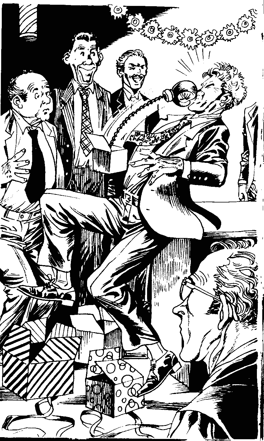 Единственият извод, който успях да направя, бе, че полковник Никълс страда от газове. Той беше мрачен и строг началник, освен това баща и могъщ покровител на моя заклет враг — онзи пакостник Тони, но нима можех да го изоставя в беда (Никълс, а не Тони)? Не, никога! Всеки от познатите ми ще ви каже, че подобно нещо не би хрумнало на Марк Маркони. Нито за миг не се поколебах да се притека на помощ на страдалеца.