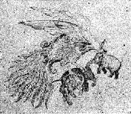 Легендарната птица рок или рух на Марко Поло можела да вдигне във въздуха наведнъж цели три слона (по старинна персийска рисунка)