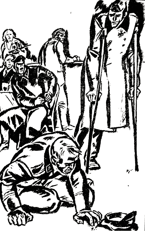 Няколко души се хвърлиха към войника. Той се наведе, извади изпод масата патерици, подпря се на тях, отмести с рязко движение стола си и направи крачка към есесовците.