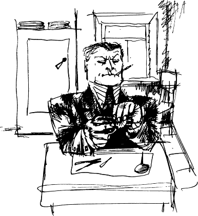 На масата седеше човек в сив костюм и си чистеше револвера. Чистеше го грижливо и застрашително. После го вдигна и се прицели в огнеупорната каса.