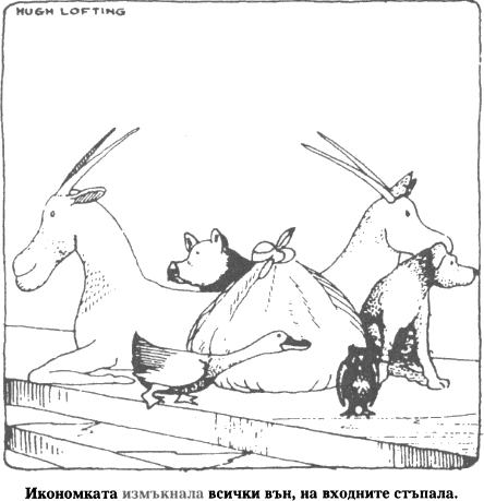 — Не започвай отсега, докторе. Изчакай малко. Нека първо разбере колко си незаменим като животински лекар, сетне ще прави каквото му кажеш. Започнеш ли с разправии, може и да ни изхвърли. А тогава вече и да искаш, нищо не можеш да направиш.
