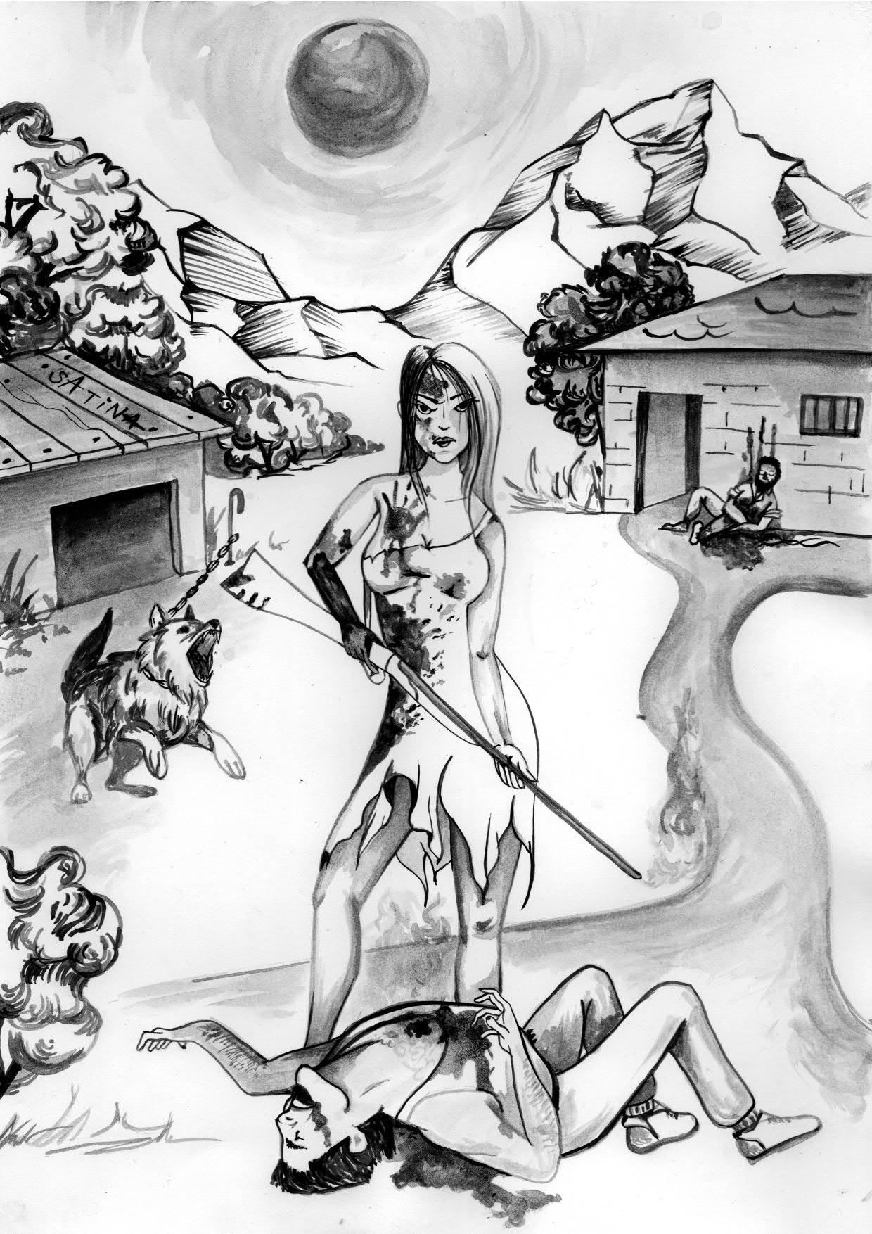 В момента лежи по очи на пода в малка стая, а косата закрива лицето й. Заради кървавата струйка, която се стича от главата й по цимента, може да се предположи, че е мъртва. По раздърпаната й рокля, скъсаната презрамка и оголената гръд може да се предположи, че е била изнасилена.