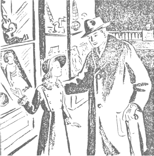 След като се разочароваха неведнъж, те решиха да се разхождат и гледат по витрините. Бяха минали край два или три магазина, без дори да влизат вътре, когато, като се приближаваха към един не особено голям, Сара изведнъж трепна и стисна баща си за ръката.