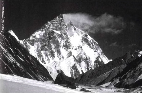 К2, фотографиран от Грег Мортенсън през 1993 г. по време на неуспешния му опит за покоряване на върха.