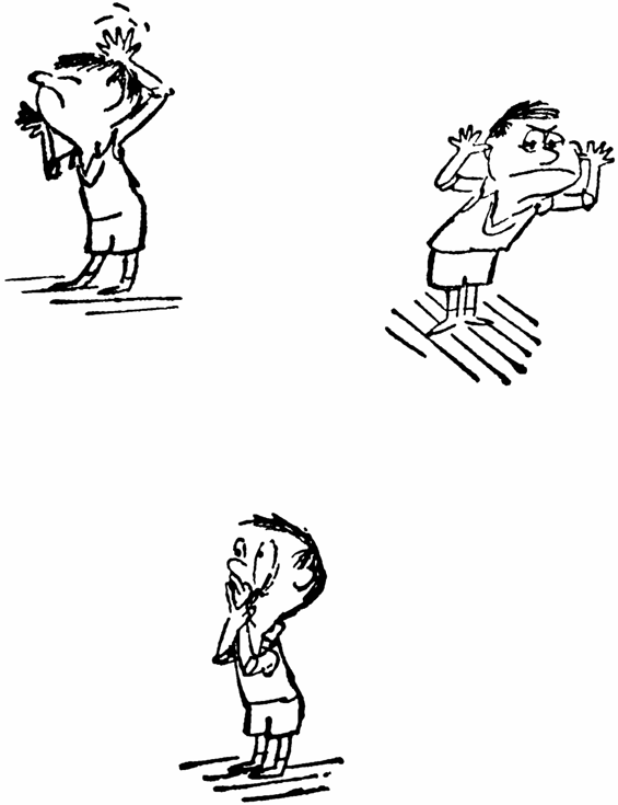Затворих шкафа и наистина ми се ревеше, тъй де, какво пък, ама ха, не е честно да имаш играчки, а да нямаш право да си служиш с тях, и всичко това заради един гаден сладкиш. В края на краищата мога да мина и без сладкиш, макар че е хрупкав, със сума ти ябълки отгоре и с пудра захар, и реших да си редя замъци от карти, понеже вдигат най-малко шум, като падат. Замъците от карти е също както като се цупиш: забавно е само в началото. След това прекарах известно време в правене на гримаси пред огледалото и най-шантавата е тази, на която Рюфюс ме научи в междучасието: натискаш носа да се вирне, теглиш клепачите да увиснат и заприличваш на куче. А после, след гримасите, си взех миналогодишния учебник по география и после татко влезе в стаята ми.