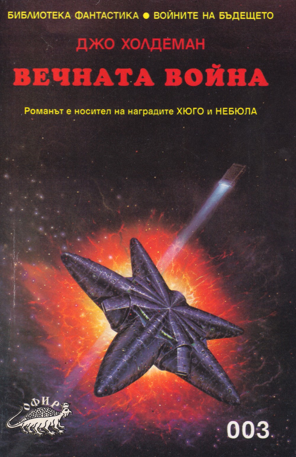 ВЕЧНАТА ВОЙНА. 1994. Изд. Офир, Бургас. Библиотека Фантастика, No.3: Войните на бъдещето. Роман. Превод: [от англ.] Тинко ТРИФОНОВ [The Forever War / Joe HALDEMAN]. Печат: Полипринт, Враца. Страници: 295. Формат: 54/84/16. Цена: 75.00 лв. ISBN: 954-8811-01-4.