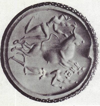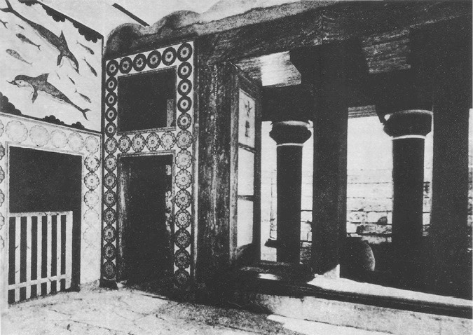 19. „Танцьорът с бика“. Частично реставрирана фреска от източното крило на двореца в Кносос, около 1500 г. пр.н.е.