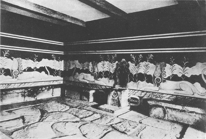 22. Фигурка на богиня със змии. Фаянс. Намерена в Кносоския дворец. Около 1600 — 1580 г. пр.н.е.