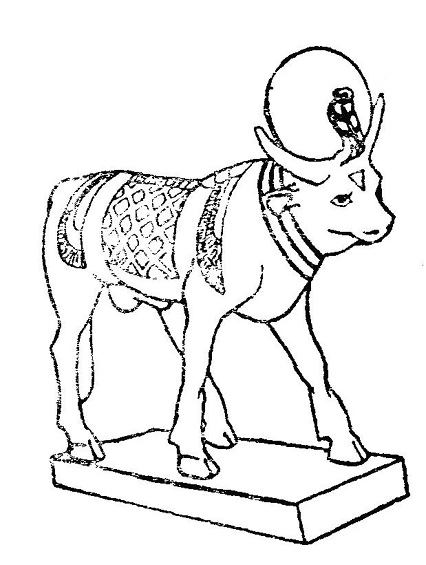 Рис. 15. Свещеният бик Апис. Той се отличавал от всички други бикове с особен белег — бял триъгълник на челото.
