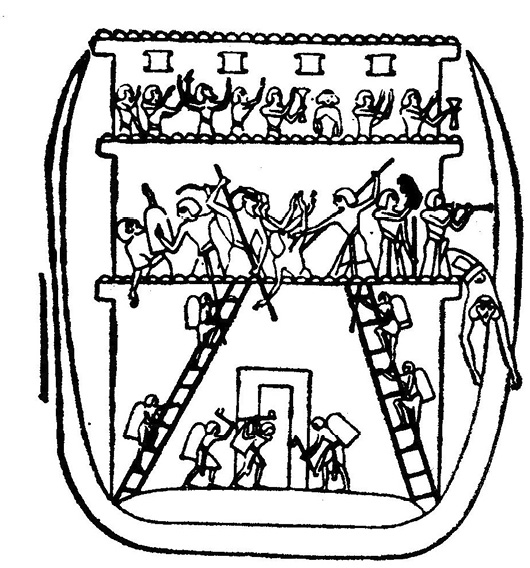 Рис. 21. Превземане на сирийска крепост.релеф върху северната външна стена на големия храм в Мединет Кабу