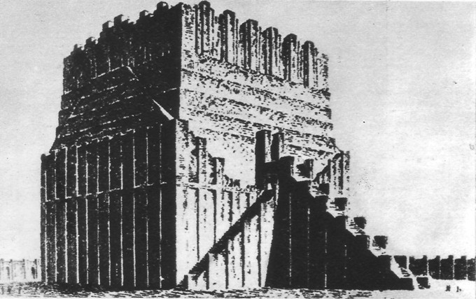 Деветдесет метра била широка тази кула в основата си, деветдесет метра била и височината й. Първият етаж бил висок тридесет и три метра, вторият — осемнадесет метра, третият, четвъртият, петият и шестият — по шест метра, а петнадесет метра бил висок храмът на вавилонския бог Мардук, покрит със злато и украсен със сини глазирани плочки, чийто блясък приветствал пътника още отдалеч.