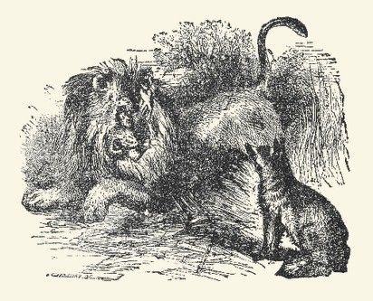 Така дошли и загинали много животни, докато накрая лисицата, която се досетила за неговата хитрост, също се появила и като застанала на безопасно разстояние от пещерата, запитала лъва как е със здравето.