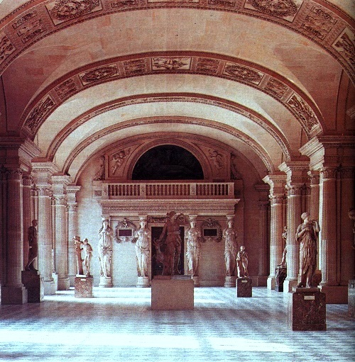 Между 1692 и 1793 г. се нарича Зала на античните произведения, защото тогава подслонява антични, средновековни и ренесансови мраморни скулптури от кралската колекция. Става седалище на Френския институт, основан през 1795 г., по-късно, през 1806 г., е присъединена към музея „Наполеон“. Украсата е завършена от архитектите Шарл Персие и Пиер Фонтен, когато е изградена голямата мраморна камина около две фигури (1551) на Жан Гужон.