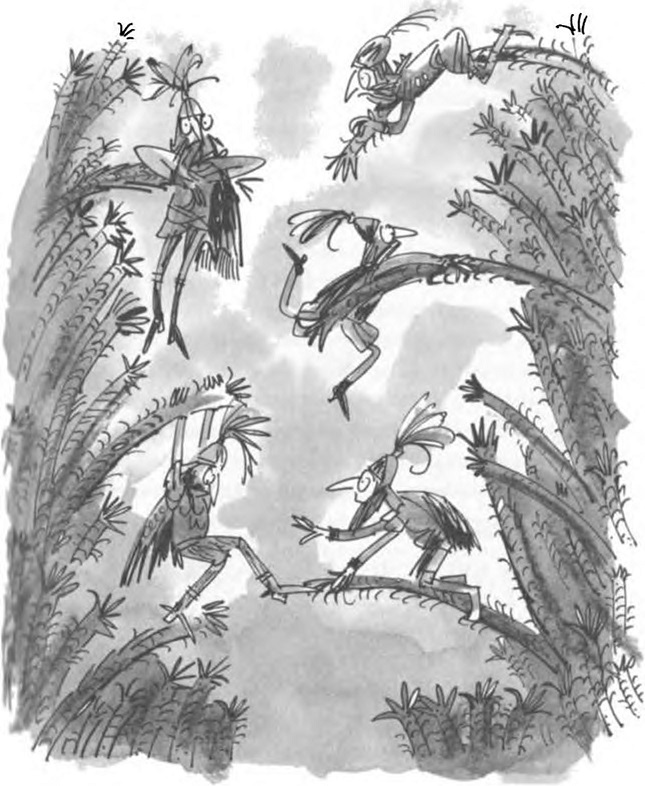 — Стига! — кресна някой и нещо, възседнало килимена лиана, се люшна през кръга, грабна Снибрил за косата и го метна в една каруца. После се люшна назад, скочи долу и се приземи право пред снарговете. Който и да бе това, той подпря на рамо дълга лъскава тояга и се прицели.