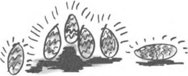 Междувременно на Джем Якбицепс не му вървеше. Танцът се ускоряваше, а той беше наясно, че вече е счупил няколко яйца. Обаче не проумяваше защо яйцата на Фред Банда само се търкулват, щом ги настъпи — чуваше ги как се чукат едно в друго, но не се чупят!
