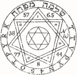 — Това съответства на научните проучвания на баща ми. — Питър посочи символите на иврит в горната част на кръга, който опасваше хептаграма. — И накрая имаме тези думи, кои то, според разказа ви, се отнасят до Ключа на Соломон — ръководството по магия, приписвано на цар Соломон.