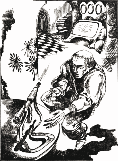 Ферн смъкна бластера от шията си, прихвана го здраво и тръгна бавно покрай стената. Не знаеше какво може да се случи. Може би болният Хелиан е някъде тук, притаен, готов да скочи върху му като звяр. А може би лежи оттатък — мъртъв! — и в широко отворените му очи играят синкавите отблясъци от екраните.