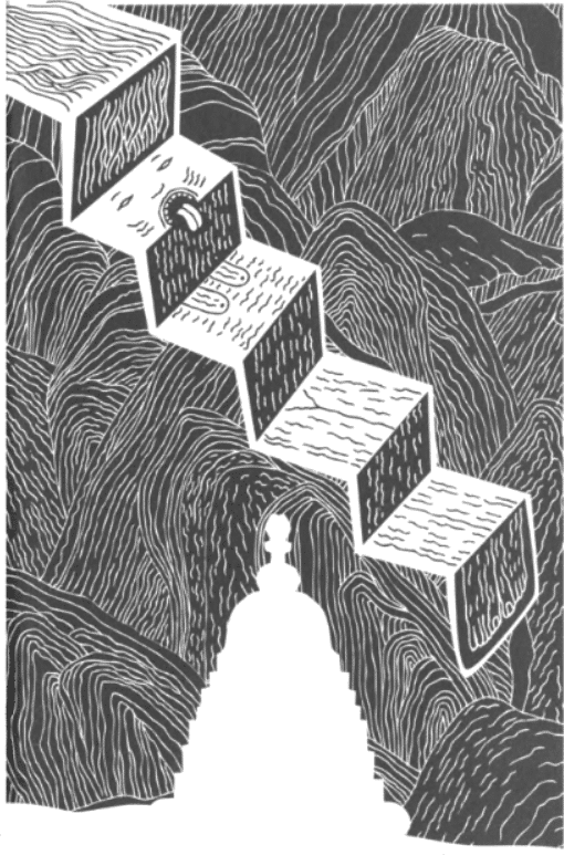 Двамата се подпряхме на каменния покрив и се мушнахме под земята. Вътре не се виждаше нищо освен няколко гаснещи въглена, но се чуваше как някой седи и пъхти. Там именно пренощувах и чух следната история. (Вярно, заради временната парализа на главния ми мозък тогава, както и заради превода, тя изглежда абсолютно лишена от логика. А вследствие от странната активност на малкия ми мозък някои детайли са така кристални, че няма как да са измислени. Най-нелепото е, че действието се развива преди четиристотин години, а разказвачът говори от първа ръка.)