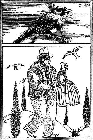 Отначало помислих, че всички птици са канарчета, но грешах: за моя радост, видях щиглеци, шарени като палячовци — ярко алени, жълти и черни; зеленики — зелени и жълти като лимонов листак в средата на лятото; конопарчета, облечени в елегантните си шоколадово-бели дрехи; червенушки с розовочервена гръд и безброй други птици. В единия ъгъл на стаята имаше стъклена врата, водеща към балкона. И в двата му края бяха направени волиери — в едната живееше мъжки кос — кадифеночерен, с ярка банановожълта човка; в отсрещната имаше птица, приличаща на дрозд, покрита с разкошни сини пера — прекрасна комбинация на оттенъци от морскосиньо до гълъбово.